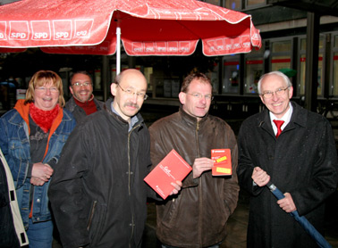 links: MdL Hubertus Kramer, Mitte: MdL Prof.Dr.Rainer Bovermann und die Genossen aus Gevelsberg.