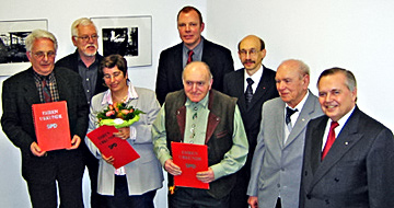 Bruno Krueger, einer der Gründer des Ortsvereins Blankenstein, der unmittelbar nach Kriegsende unter schwierigsten Umständen die Sozialdemokratie in Hattingen wieder begründete, blickt auf 60 Jahre Mitgliedschaft zurück. Der 92-jährige erfreut sich noch bester Gesundheit und war stolz über die Glückwünsche. Adolf Hirsch ist seit 50 Jahren Mitglied der SPD, Joseph Lücking seit 40 Jahren auch als Kassierer aktiv. Für ihr 25-jähriges Jubiläum kann Bernadette Hesse die Glückwünsche entgegennehmen.