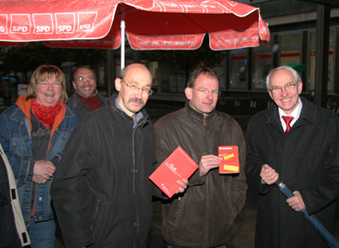 Informationsstand der SPD Hattingen vor der Hauptsparkasse in Hattingen, Mitte: Prof. Dr. Rainer Bovermann.