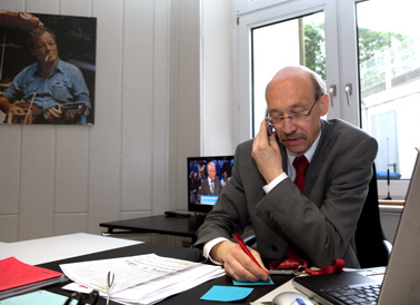 Schnell noch ein Telefonat bevor ab 18:00 Uhr im Fernsehen die Hochrechnungen durchgegeben werden.