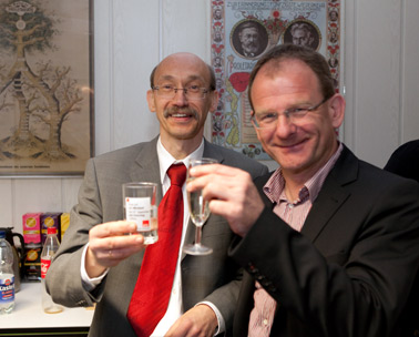 Der Hattinger SPD-Fraktionsvorsitzende Achim Paas gratuliert Rainer Bovermann zu seinem fulminanten Wahlsieg.