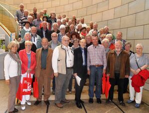 Auf der großen Treppe zum Plenarsaal war beim Gruppenfoto kein Durchkommen mehr. Und auch bei der vorangegangenen Diskussion war der Raum der Landespressekonferenz bis auf den letzten Platz besetzt - diesmal jedoch nicht mit Journalistinnen und Journalisten und Mitgliedern der Landesregierung, sondern mit dem MGV Liederfreund aus Hattingen. Die Chormitglieder waren der Einladung ihres heimischen Abgeordneten Rainer Bovermann nach Düsseldorf gefolgt und nutzten die Gelegenheit zahlreiche Fragen zu stellen. Was passiert mit dem Bürgerhaus in Welper? Wann kommt die Umgehungstraße in Sprockhövel? Wie stehen Sie als Abgeordneter zu dem neuen ökologischen Jagdgesetz? Der Landtagsabgeordnete informierte über den Stand der Planungen in Welper und Sprockhövel. Zum Jagdgesetz versuchte Rainer Bovermann seinen Gästen zu verdeutlichen, dass politische Entscheidungen in erster Linie durch die Kompromissbereitschaft aller beteiligten Parteien erreicht werden. Da muss jede Seite dann auch einmal „in den sauren Apfel beißen“. Einen fröhlichen Abschluss fand der Besuch in einer Hausbrauerei in der Düsseldorfer Altstadt.