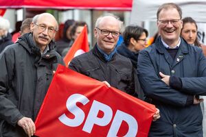 Auch in diesem Jahr nahm der SPD-Landtagsabgeordnete Rainer Bovermann an der schon traditionellen Maikundgebung im Krämersdorf in Hattingen teil. Die Kundgebung stand unter dem Motto des DGB: „Vielfalt – Gerechtigkeit – Solidarität“. Aufmerksam hörten der Bundestagsabgeordnete Ralf Kapschack, Landrat Olaf Schade und MdL Rainer Bovermann den Worten von Hans-Georg Harms (ver.di) zu, der insbesondere die immer geringere Tarifbindung in der Wirtschaft kritisierte. Am Rande der Veranstaltung forderte Rainer Bovermann die Schaffung eines sozialen Arbeitsmarktes für Langzeitarbeitslose, die Rückkehrmöglichkeit von Teilzeit in die vorherige Arbeitszeit und eine Reform des Rentensystems.