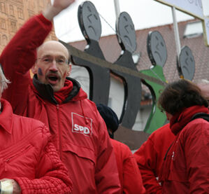 In Hattingen-Holthausen gab es, trotz des zeitweilig heftigen Schneefalls, zum 29. Mal einen Rosenmontagszug. Die Genossen aus Hattingen-Holthausen haben wieder mit einem Motivwagen, unter dem Motto "Wir ziehen an einem Strick", daran teilgenommen haben.