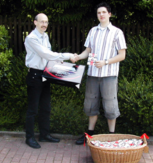 Bovermann in Hattingen Preise an die Gewinner des Preisrätsels rund um seine Person. Das Rätsel war in den letzten Wochen im gesamten Wahlkreis in Hattingen, Wetter, Sprockhövel und Schwelm an den Infoständen gespielt worden.