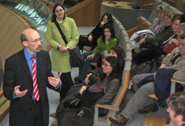 „Wie übersetzt man „Hammelsprung“? Das war eine der ersten Fragen, die sich die beiden Landtagsabgeordneten Rainer Bovermann und Hubertus Kramer bei der von ihnen geleiteten Führung durch den Düsseldorfer Landtag zu stellen hatten. Erklärt, gefragt und geantwortet wurde nämlich in Englisch, was das Engagement der Teilnehmer bei den darauf folgenden Diskussionen jedoch keineswegs beeinträchtigte. Dementsprechend hatten die beiden Abgeordneten des Ennepe-Ruhr-Kreises auch sichtlich Freude daran, ihren interessierten Gästen die Grundzüge des parlamentarischen Regierungssystems näher zu bringen. Beendet wurde der anstrengende aber auch informative Tag mit einem Besuch in der Düsseldorfer Altstadt.